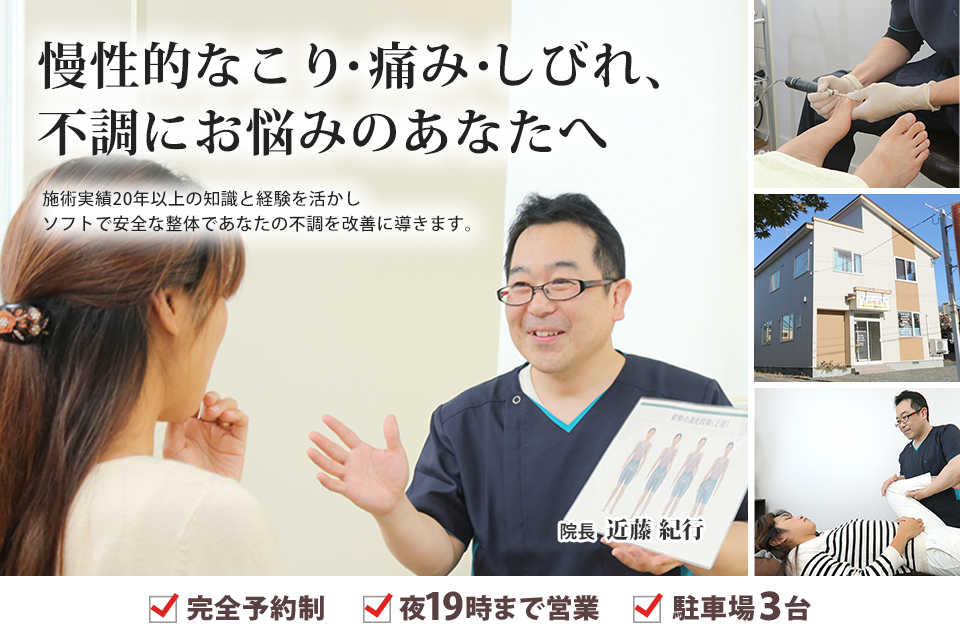 強く押したり、無理にボキボキする施術ではなく、身体に負担の少ないやさしい整体です。整体が初めての方でも安心して受けていただけます。