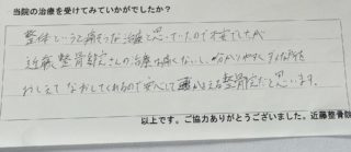 整体というと痛そうな治療と思っていたので不安でしたが、近藤整骨院さんの治療は痛くないし、分かりやすくダメな所をおしえてなおしてくれるので安心して通える整骨院だと思います。